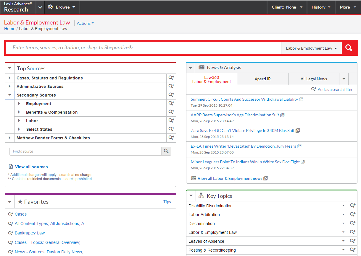 LexisSmart general legal search homepage